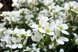 2. Gęsiówka kaukaska - bylina o zwartym pokroju, która dorasta do wysokości 20cm. Cechą charakterystyczną tej rośliny są kwiatostany w formie gron, które zdobią kwiaty o śnieżnobiałych płatkach.