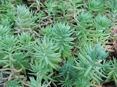 - Rozchodnik Pospolity (Sedum acre) - niski gatunek rozchodnika o zielonych liściach i jaskrawo żółtych kwiatach. Bardzo odporny na suszę.