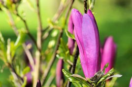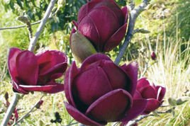 Magnolia liliiflora (liliokwiatowa): Posiada efektowne, fioletowe lub różowe o kształcie przypominającym lilię. Kwitnie wczesną wiosną.