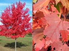 - Klon czerwony (Acer rubrum) - bogato kolorująca się odmiana klonu ozdobnego, charakteryzująca się intensywnie czerwonymi liśćmi jesienią.