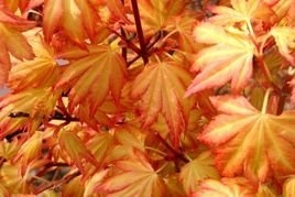 - Klon palmowy Orange Dream - odmiana ta ma intensywnie pomarańczowe liście wiosną, które stopniowo przejściowo do zielono-żółtych latem.