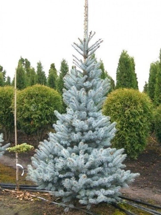 - Świerk kłujący Omega osiągać do 10-15 m. Ma szeroko stożkowy pokrój. Gałązki są obficie porośnięte długimi, sztywnymi, grubymi i kłujacymi igłami w kolorze niebieskawym, srebrzystym. Zachowują swoją barwę przez cały rok. Szyszki tej rośliny mają 6-8 cm.