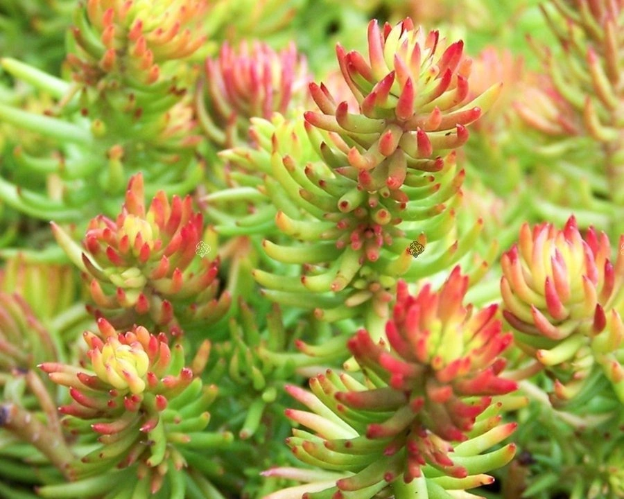 - Rozchodnik nicejski Aureum Sedum sediforme bylina o wałeczkowatych, jaskrawo złotych liściach, które zmieniają barwę od złocistej do czerwonawej zależnie od warunków i pory roku.
