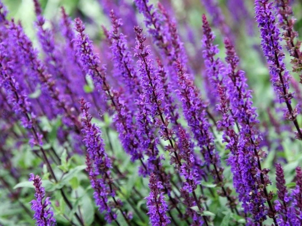 - Szałwia omszona Caradonna Salvia nemorosa tworząca zwartą kępę wzniesionych pędów z owalnymi, szarozielonymi liśćmi. Od czerwca tworzy liczne kłosowate kwiatostany złożone z wielu intensywnie niebieskich kwiatów.