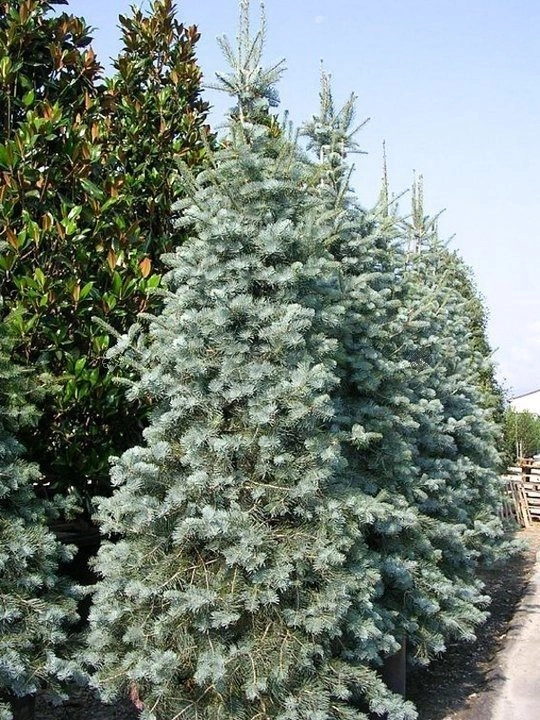 - Jedna z najładniejszych odmian jeśli chodzi o srebrzyste wybarwienie igieł. Odmiana o regularnej, stożkowej koronie i długich, miękkich igłach.