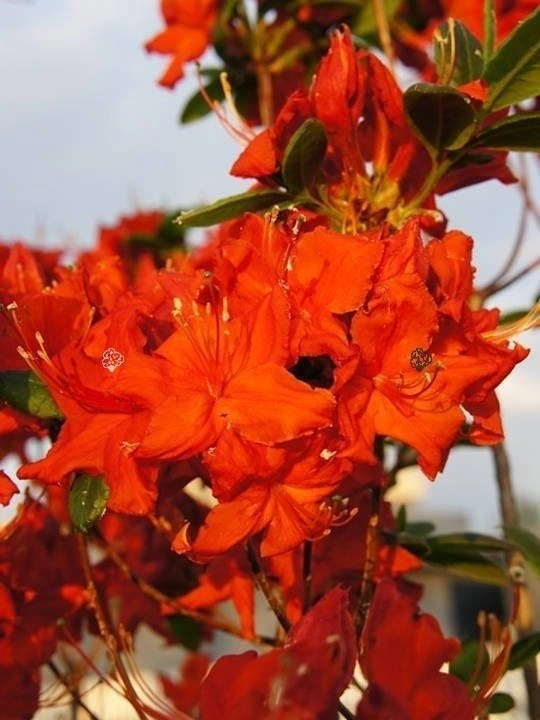 - Azalia Fireball odmiana o sezonowych, ciemnozielonych i błyszczących liściach pięknie przebarwiających się jesienią, oraz pięknych ciemnoczerwonych kwiatach z lekkim pomarańczowym odcieniem. Płatki kwiatów lekko odgięte do tyłu.