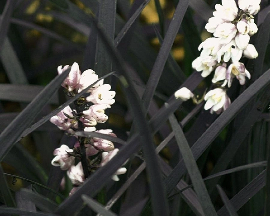 • Konwalnik płaskopędowy Black Dragon Ophiopogon planiscapus dorastająca do 25cm, o atrakcyjnych, prawie czarnych, błyszczących liściach, i nieznacznych białych lub liliowych kwiatach, po których pojawiają się dekoracyjne, turkusowo czarne owoce.