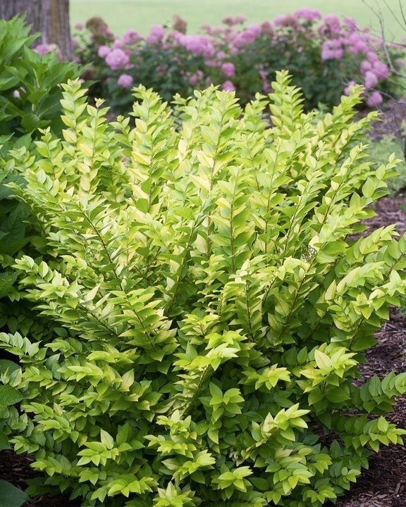 - Ligustr Vicaryi Ligustrum sztywno wyprostowany krzew, dorastający do 2m wysokości. Liście błyszczące, żółte. Kwiaty kremowo białe, pachnące, miododajne pojawiają się w lipcu.