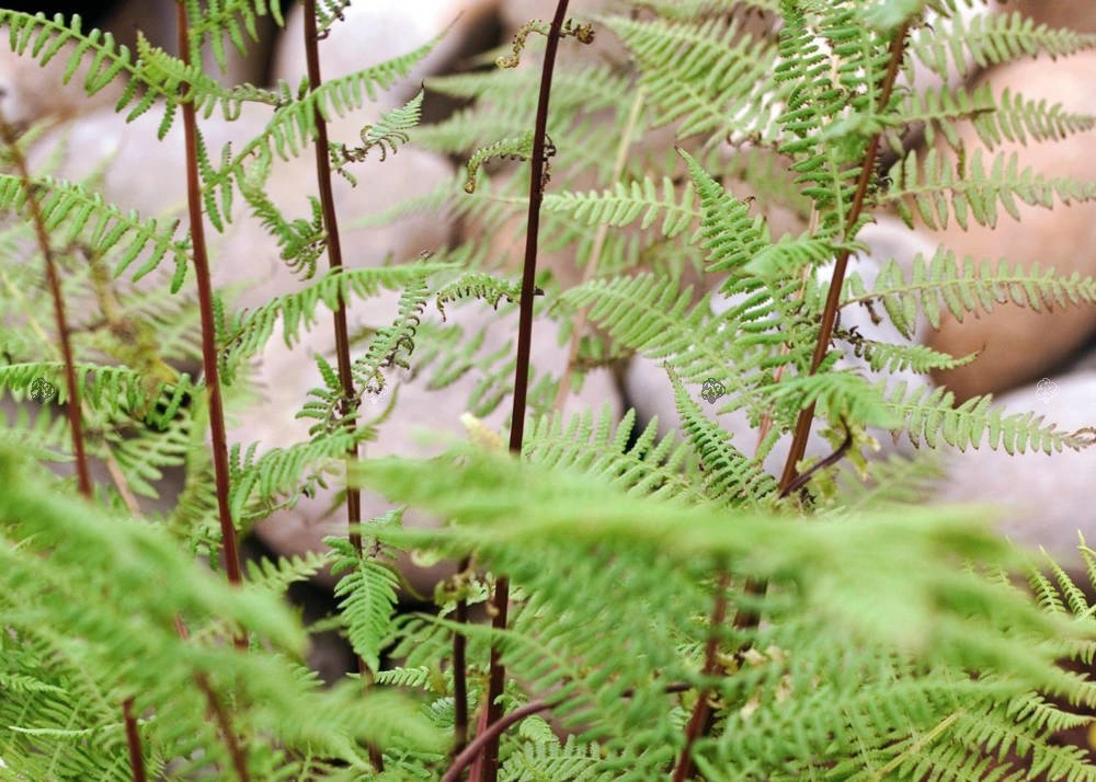 - Wietlica samicza Rotstiel Athyrium filix-femina paproć o krzaczastym pokroju, dorastająca do 70 cm wysokości o jasnozielonych, szerokich liściach i łodyżką w kontrastowej czerwonej barwie.