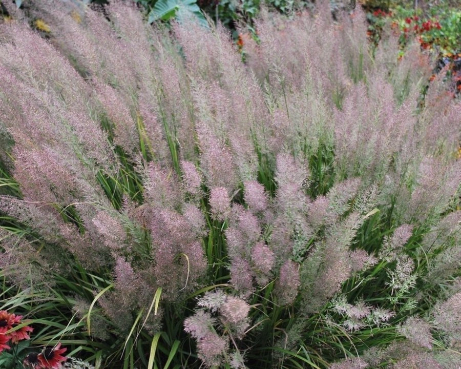 - Trzcinnik krótkowłosy Calamagrostis brachytricha. Osiąga około 120 cm wysokości. Zielone liście z czasem przebarwiają się na żóltawo-beżowy odcień. Kłosy pojawiające się w sierpniu są purpurowo-czerwone z przekwitaniem przybierają jasnobrązową barwę.