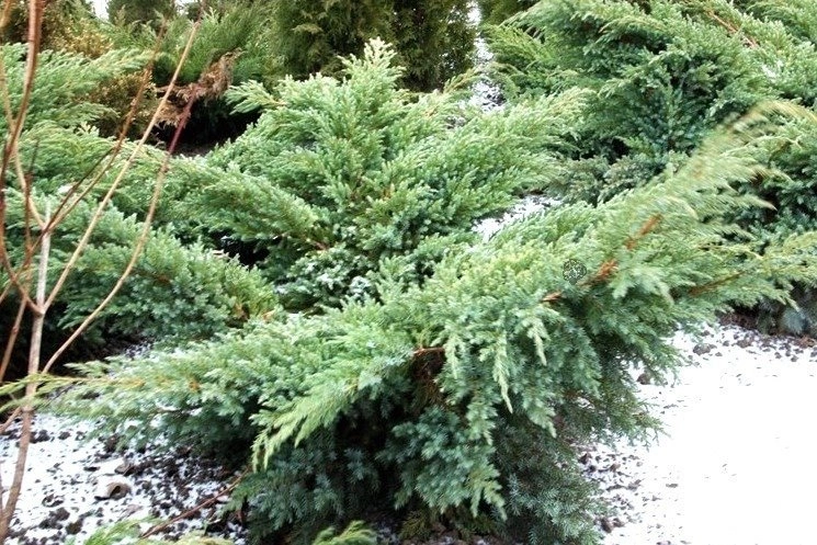 • Jałowiec łuskowaty Hunnetorp Juniperus squamata odmiana o niskim, krzaczastym pokroju dorastająca do 0.5m wysokości i dwukrotnie większej szerokości. Igły w atrakcyjnym srebrzystoniebieskim kolorze.