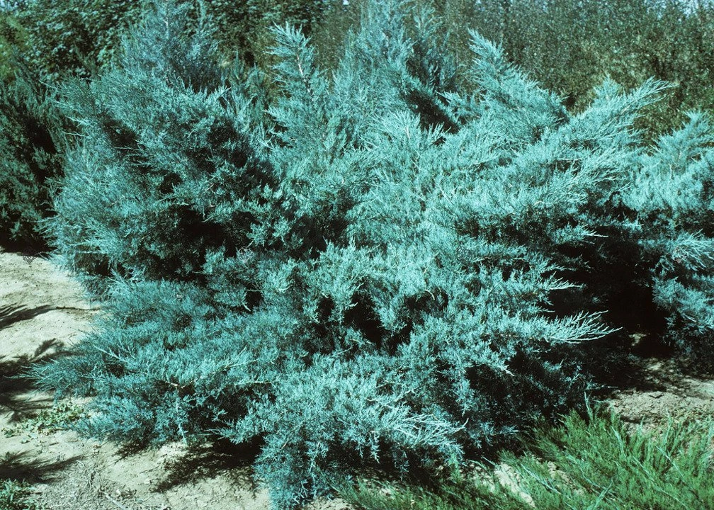 - Jałowiec Pfitzeriana Glauca piękny, zimozielony krzew o srebrzysto niebieskich, miękkich igłach zmieniających barwę zimową porą na purpurowo-niebieskie odcienie. Pędy jałowca Pfitzera Pfitzeriana Glauca są sztywne i rosną ukośnie, skierowane do góry.