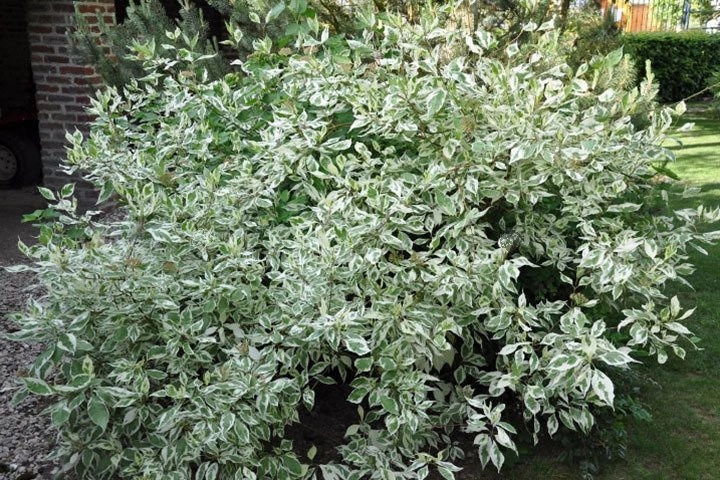 • Dereń biały Elegantissima to okazały, rozłożysty krzew o dekoracyjnych liściach i pędach. Polecany do ogrodów przydomowych, ale także jako zieleń publiczna do parków.