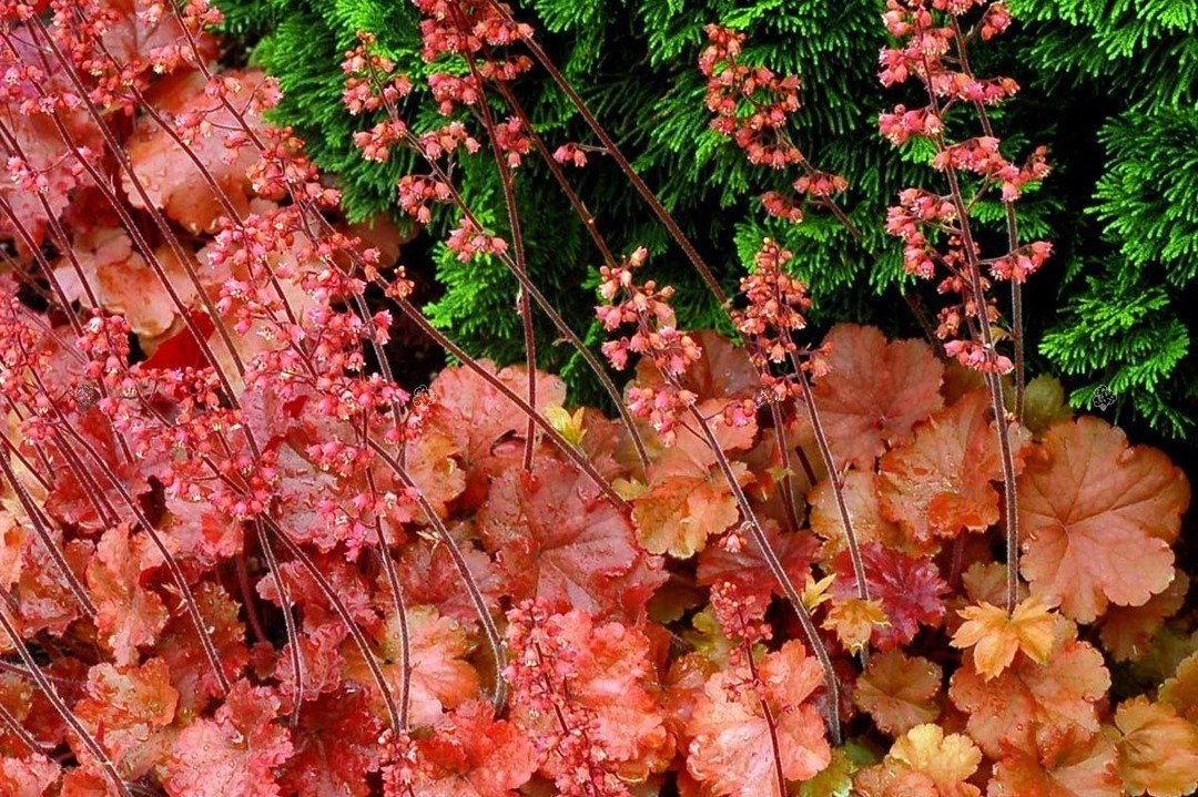 Żurawka Cherry Cola to bardzo oryginalna roślina o dekoracyjnych zarówno liściach jak i kwiatach.