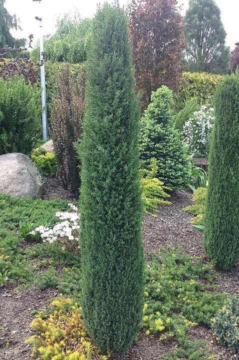 - Jałowiec pospolity Arnold to krzew o kolumnowej, wyprostowanej formie, wolno rosnący. Po 10 latach może osiągać do 1, 5 - 2 m. wysokości i zaledwie 40 cm szerokości. Odmiana ta posiada niewielkie, krótkie igły w kolorze szaroniebieskim.