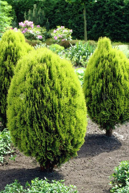 - Tuja Aurea Nana, po kilku latach uprawy na krzewie mogą się pojawić ozdobne, okrągławe szyszki.Zalecane jest do nasadzeń w małych ogrodach i skalniakach.