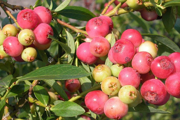- Borówka amerykańska Pink Lemonade osiąga owysokość 1,5 metra. Jagody są drobne lub średnie i pokrywa je woskowy nalot. Są dość twarde. Nadają się do zbioru pod koniec września i na początku października.
