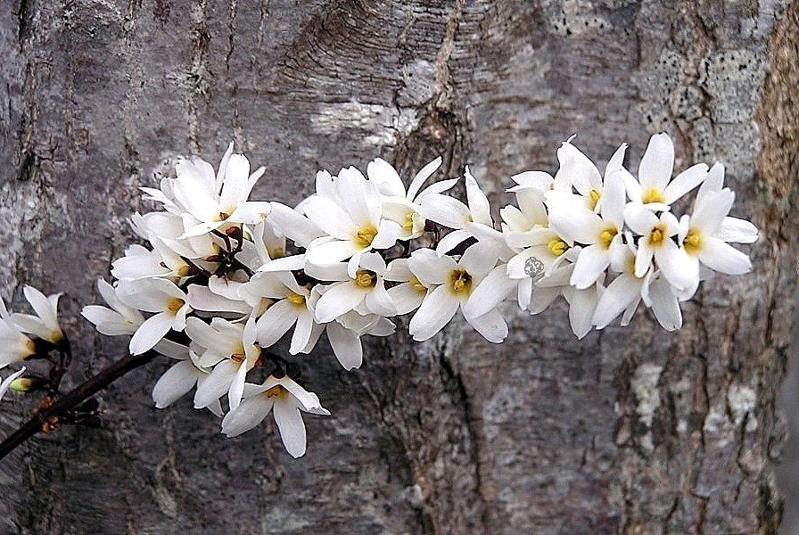 Abeliofylum koreańskie zwane jest czasami białą forsycją, ze względu na podobieństwo ich kwiatów.