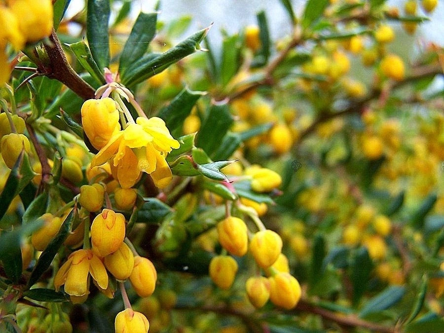 • Berberys wąskolistny ubarwienie ma zawsze zielone, późną wiosną pojawiają się żółte kwiaty. Świetnie sprawdzi się w przydomowych ogrodach, w parkach czy też w zieleni miejskiej.
